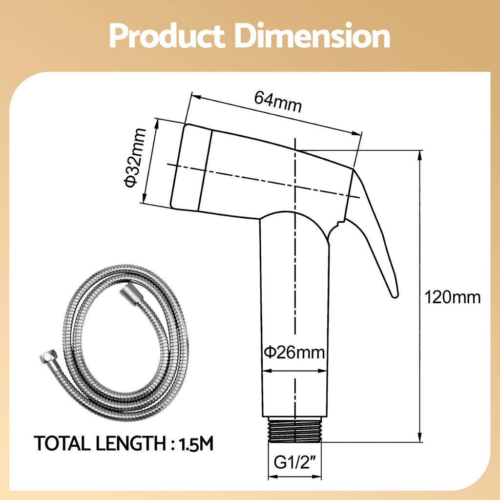 ABS Plastic Sprayer: Electroplated shower head (12cmx8.5cmx3.2cm) is lightweight and robust